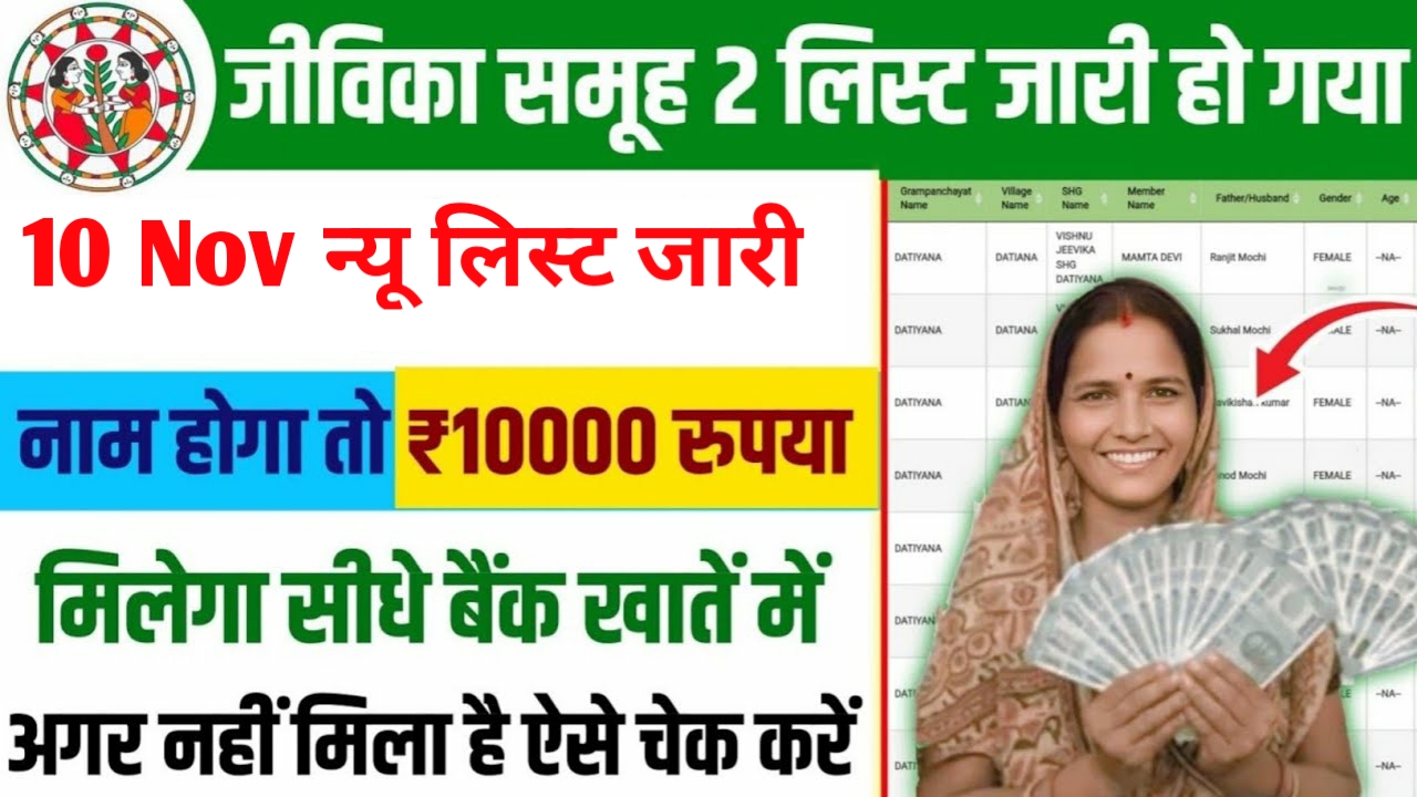 jivika Didi 4th Payment list : सभी जीविका दीदी के खातों में ₹10000 की चौथी लिस्ट सहायता राशि जारी कर दिया गया लिस्ट में अपना नाम चेक करें !